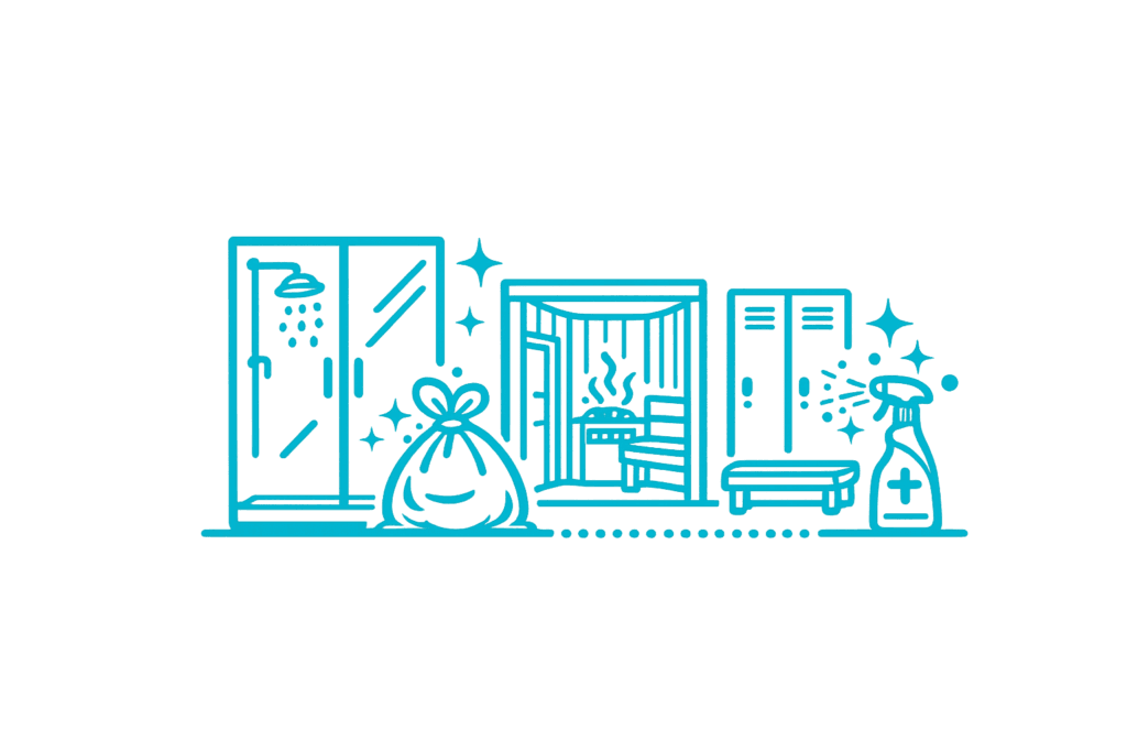 Didelis dėmesys skiriamas sanitarinių zonų priežiūrai – atliekame WC zonos valymą ir dezinfekavimą, dušinių, pirčių bei persirengimo patalpų valymą ir dezinfekciją. Tai padeda palaikyti aukščiausius higienos standartus.